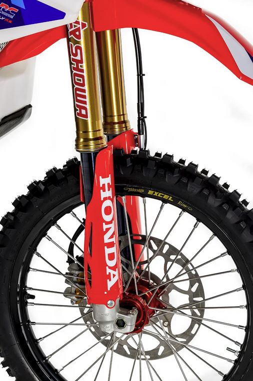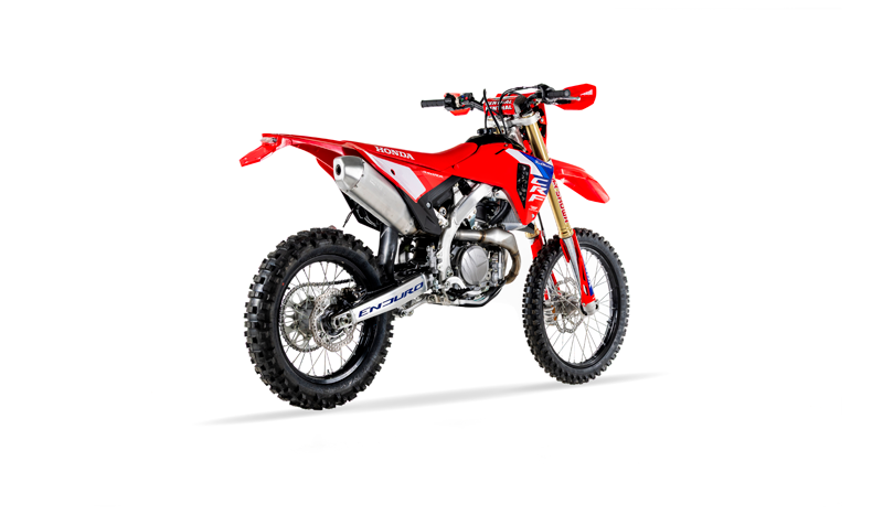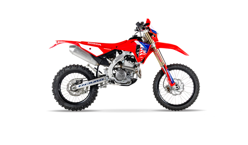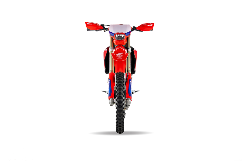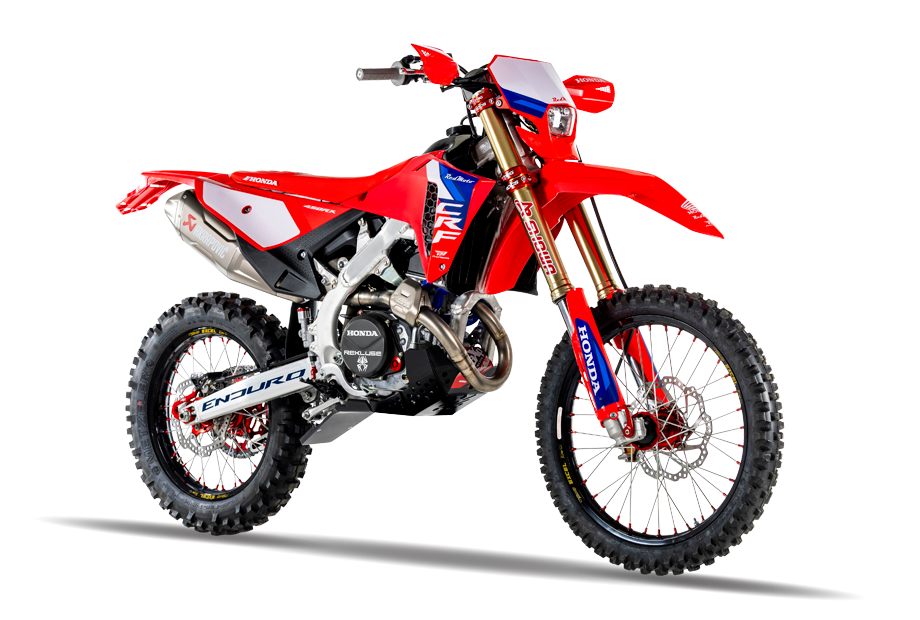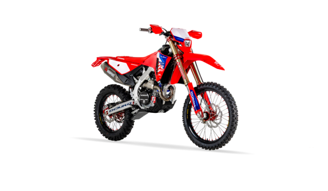 Das Motorrad, das in den wichtigsten Supermoto-Meisterschaften antritt, ist bereit, Sie auf der Straße zu begeistern: ein Rahmen der neuesten Generation, ein Hochleistungsfahrwerk und ein radiales Brembo-Bremssystem für atemberaubende Bremsleistung! Dank des Aluminiumrahmens der achten Generation bietet es extremes Handling und Agilität mit beeindruckenden Schräglagen. Die CRF 450RX Supermoto, abgeleitet vom Rennsport, verfügt über eine neue CNC-gefräste Gabelbrücke und einen großen 8,5-Liter-Tank für lange Touren. Drei wählbare Einspritzkennfelder über den EMSB (Engine Mode Select Button) ermöglichen Ihnen die individuelle Anpassung der Leistungsentfaltung, während HSTC (High Speed Traction Control) für optimale Performance sorgt.