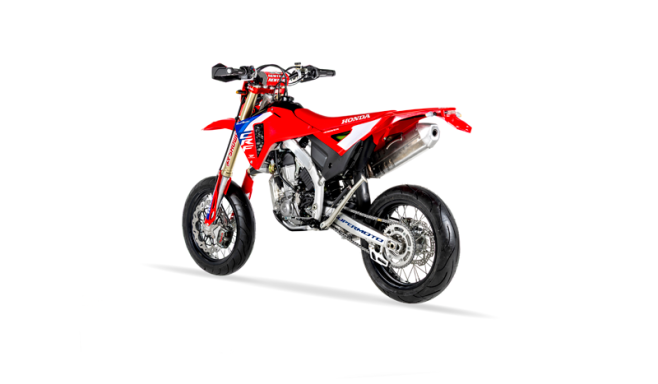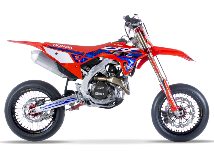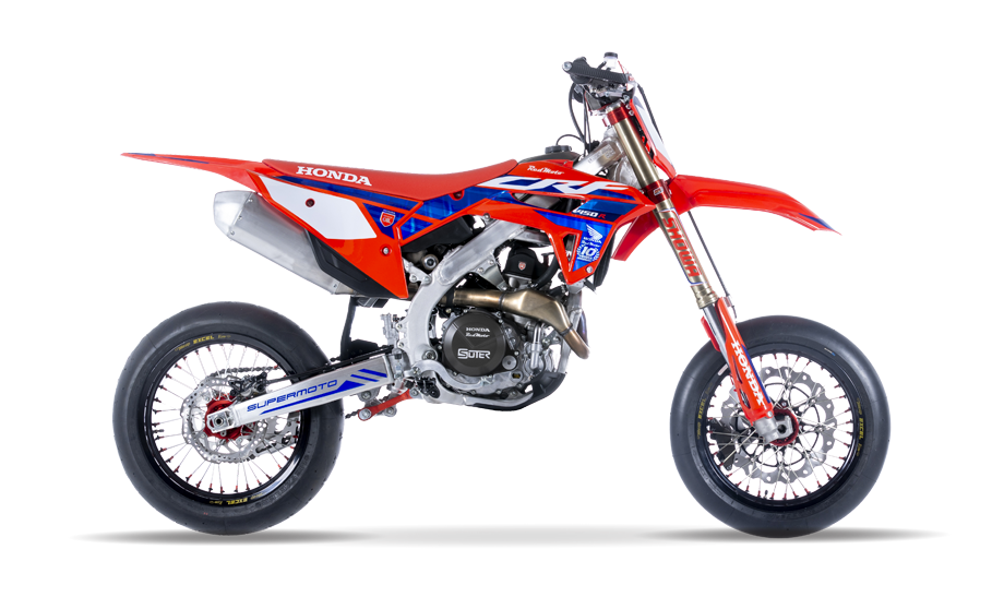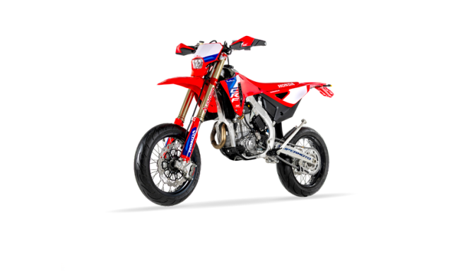 Direkt aus der Rennabteilung eines offiziellen Supermoto-Teams, das seit über 20 Jahren an der Weltmeisterschaft und der italienischen Meisterschaft teilnimmt. Die CRF 450R SMT wurde in Zusammenarbeit mit führenden internationalen Marken mit den besten professionellen Komponenten entwickelt. Zusätzlich lässt sich das Motorrad mit einer Reihe von Optionen individualisieren, um seine Leistung weiter zu steigern.