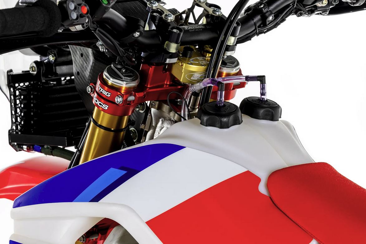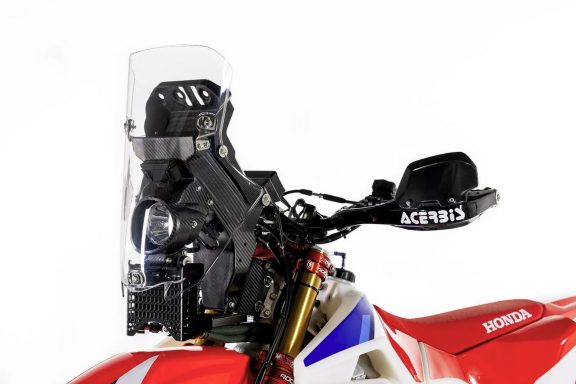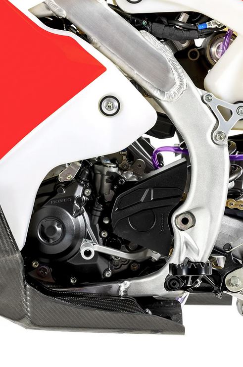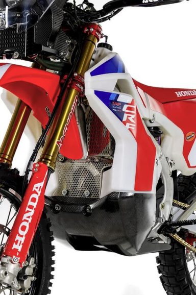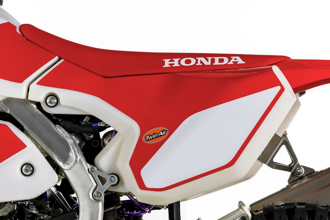 Um so nah wie möglich an die Werksversion heranzukommen und eine Rennmaschine in exakter Rennspezifikation zu erhalten, wurde der Rahmen der CRF450R als technische Basis verwendet. Dies gewährleistet maximale Fahrdynamikstabilität in extrem unwegsamem und felsigem Gelände. Das Motorrad verfügt über einen Doppeltank (vorn/hinten) mit einem Gesamtvolumen von 36 Litern. Der 14-Liter-Hecktank ist auf Gummilagern montiert, was die Massenträgheit in Kurven reduziert und dem Fahrer ein leichteres, agileres und kontrollierteres Fahrgefühl ermöglicht.