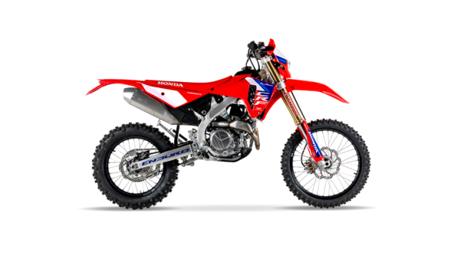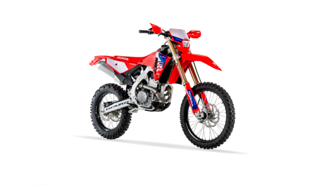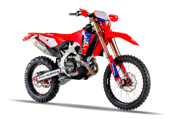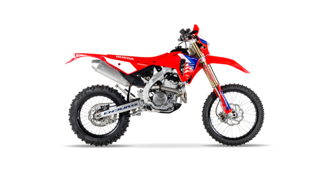 Die neue CRF 450RX Enduro 2026 bestätigt ihren Status als Klassenprimus in Sachen Handling und Stabilität, insbesondere in anspruchsvollstem Gelände, ohne dabei die für sie typische Agilität einzubüßen. Die Innovationen des 2025er Modells wurden vollständig übernommen, vom Rahmen und dem Showa-Fahrwerk bis hin zum von HRC entwickelten Doppelkolben-Bremssattel. Optimierte Drehmomententfaltung im mittleren Drehzahlbereich und eine hohe Leistungsentfaltung jenseits der maximalen Drehzahl sorgen für Grip und Traktion. Elektroniktechnisch umfasst das Paket die Honda Selectable Torque Control (HSTC) mit drei Eingriffsstufen, Launch Control und den Engine Mode Select Button (EMSB). Zu den wichtigsten Neuerungen zählt die überarbeitete linke Seitenverkleidung, die einen werkzeuglosen Zugang zum Luftfilter ermöglicht. Die neue Grafik unterstreicht den aggressiveren Look, inspiriert von den offiziellen Enduro-Teamfarben. Eine „Special“-Version ist ebenfalls erhältlich und mit Komponenten ausgestattet, die Leistung und Attraktivität weiter steigern.