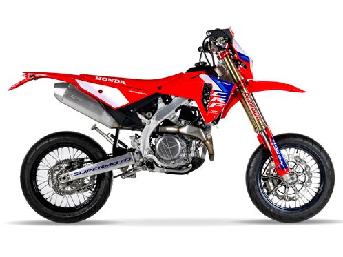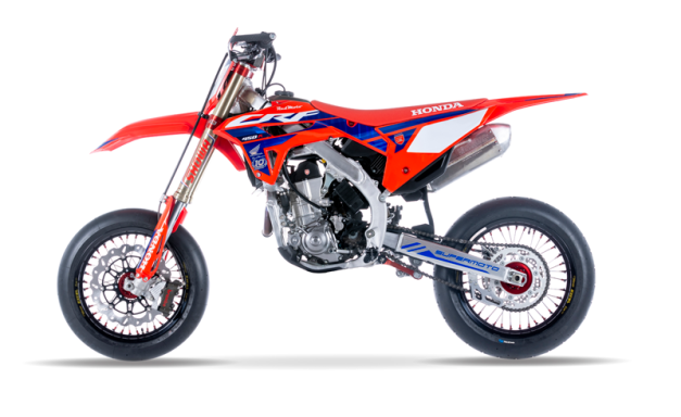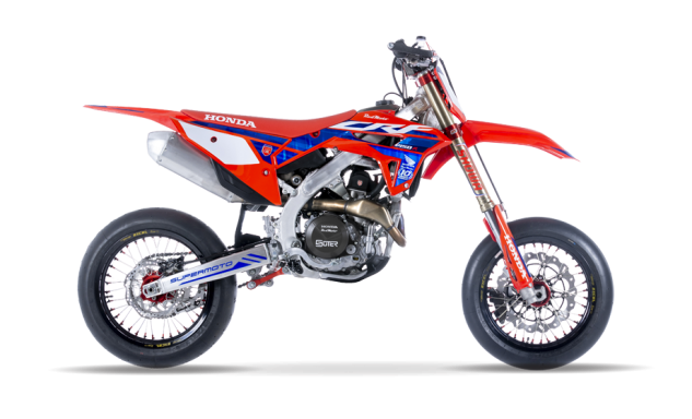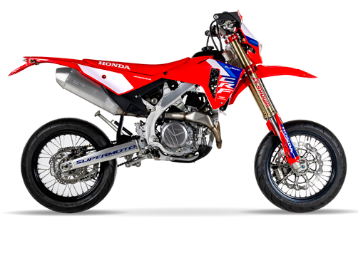 Direkt aus der Rennabteilung eines offiziellen Supermoto-Teams, das seit über 20 Jahren an der Weltmeisterschaft und der italienischen Meisterschaft teilnimmt. Die CRF 450R SMT wurde in Zusammenarbeit mit führenden internationalen Marken mit den besten professionellen Komponenten entwickelt. Zusätzlich lässt sich das Motorrad mit einer Reihe von Optionen individualisieren, um seine Leistung weiter zu steigern.