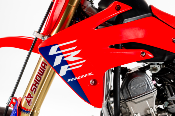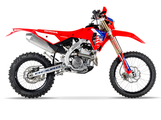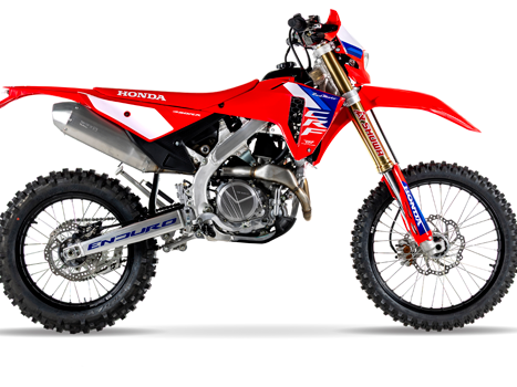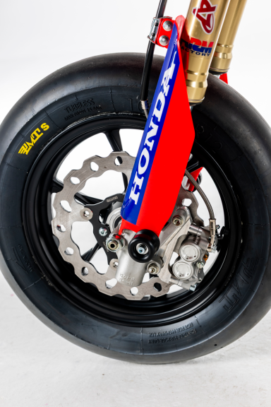 Das Motorrad, das in den wichtigsten Supermoto-Meisterschaften antritt, ist bereit, Sie auf der Straße zu begeistern: ein Rahmen der neuesten Generation, ein Hochleistungsfahrwerk und ein radiales Brembo-Bremssystem für atemberaubende Bremsleistung! Dank des Aluminiumrahmens der achten Generation bietet es extremes Handling und Agilität mit beeindruckenden Schräglagen. Die CRF 450RX Supermoto, abgeleitet vom Rennsport, verfügt über eine neue CNC-gefräste Gabelbrücke und einen großen 8,5-Liter-Tank für lange Touren. Drei wählbare Einspritzkennfelder über den EMSB (Engine Mode Select Button) ermöglichen Ihnen die individuelle Anpassung der Leistungsentfaltung, während HSTC (High Speed Traction Control) für optimale Performance sorgt.