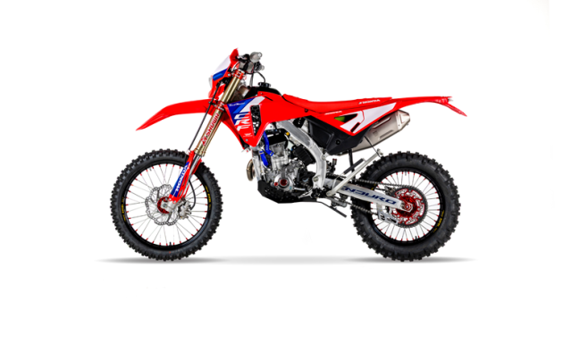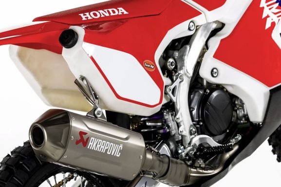 Um so nah wie möglich an die Werksversion heranzukommen und eine Rennmaschine in exakter Rennspezifikation zu erhalten, wurde der Rahmen der CRF450R als technische Basis verwendet. Dies gewährleistet maximale Fahrdynamikstabilität in extrem unwegsamem und felsigem Gelände. Das Motorrad verfügt über einen Doppeltank (vorn/hinten) mit einem Gesamtvolumen von 36 Litern. Der 14-Liter-Hecktank ist auf Gummilagern montiert, was die Massenträgheit in Kurven reduziert und dem Fahrer ein leichteres, agileres und kontrollierteres Fahrgefühl ermöglicht.