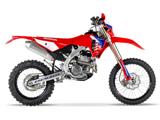 Die neue CRF 450RX Enduro 2026 bestätigt ihren Status als Klassenprimus in Sachen Handling und Stabilität, insbesondere in anspruchsvollstem Gelände, ohne dabei die für sie typische Agilität einzubüßen. Die Innovationen des 2025er Modells wurden vollständig übernommen, vom Rahmen und dem Showa-Fahrwerk bis hin zum von HRC entwickelten Doppelkolben-Bremssattel. Optimierte Drehmomententfaltung im mittleren Drehzahlbereich und eine hohe Leistungsentfaltung jenseits der maximalen Drehzahl sorgen für Grip und Traktion. Elektroniktechnisch umfasst das Paket die Honda Selectable Torque Control (HSTC) mit drei Eingriffsstufen, Launch Control und den Engine Mode Select Button (EMSB). Zu den wichtigsten Neuerungen zählt die überarbeitete linke Seitenverkleidung, die einen werkzeuglosen Zugang zum Luftfilter ermöglicht. Die neue Grafik unterstreicht den aggressiveren Look, inspiriert von den offiziellen Enduro-Teamfarben. Eine „Special“-Version ist ebenfalls erhältlich und mit Komponenten ausgestattet, die Leistung und Attraktivität weiter steigern.